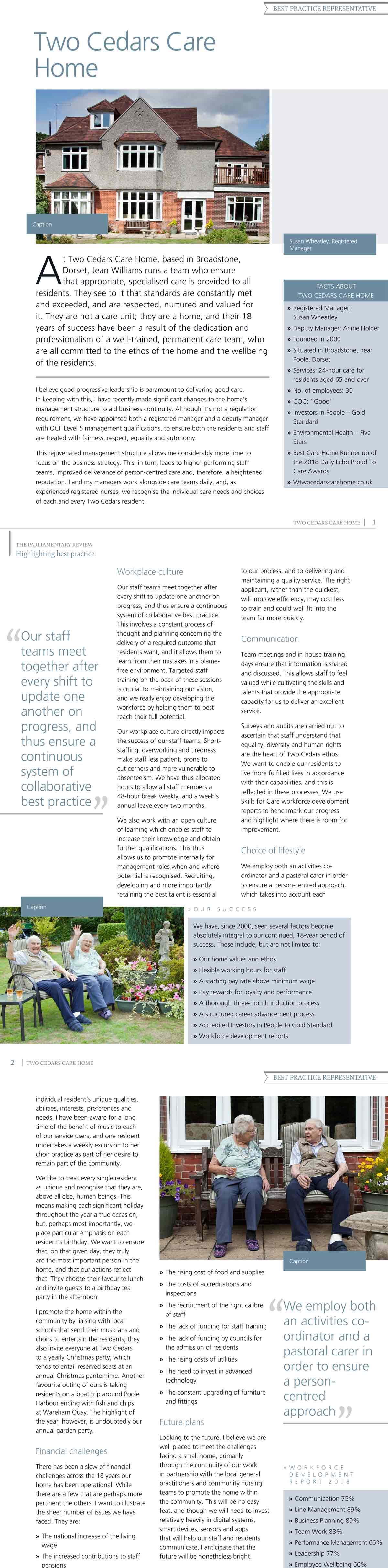 Two Cedars has recently been part of a parliamentary review and we are pleased to present the article below or you can download it here.